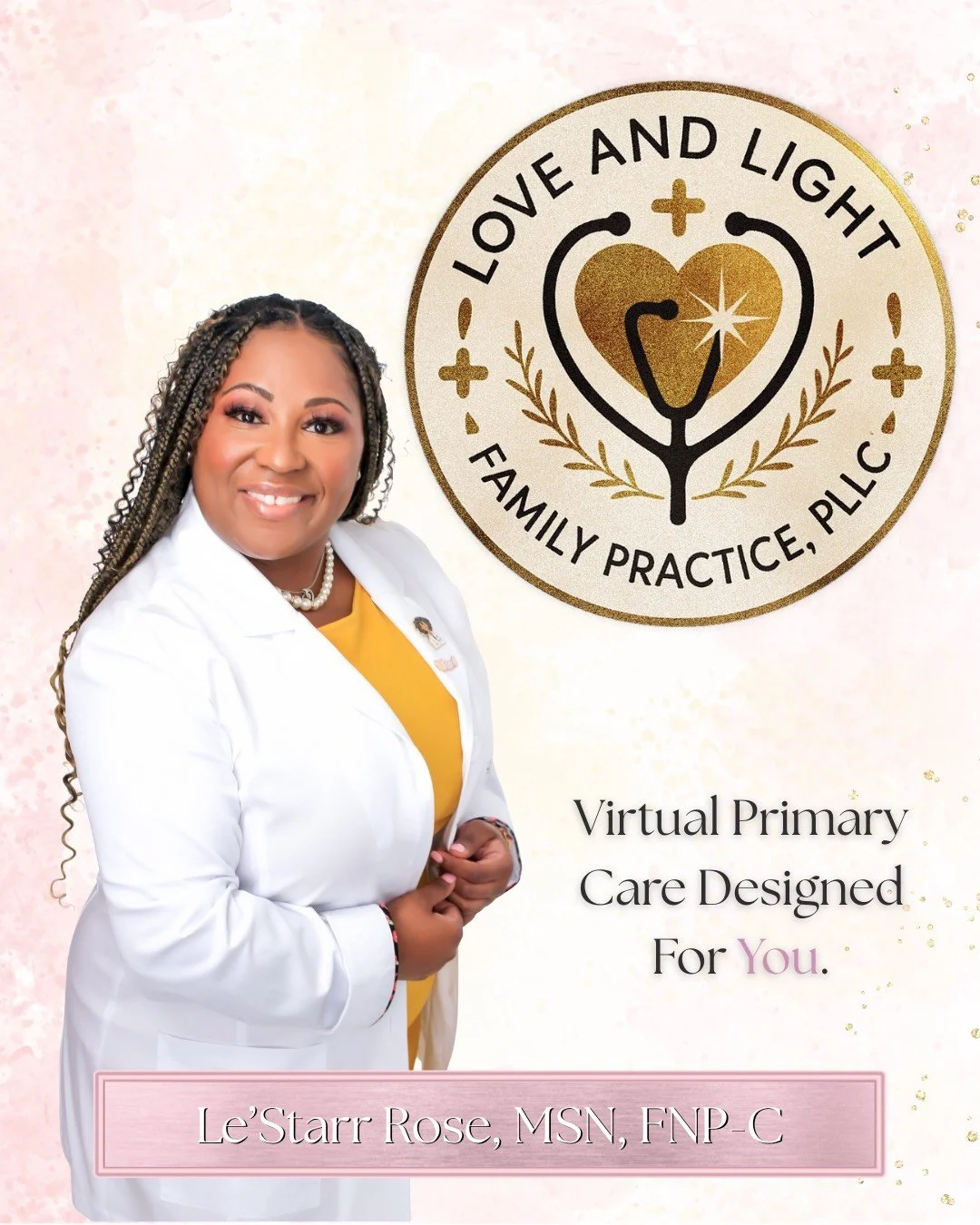 Le’Starr is the owner of Love and Light Family Practice, PLLC, which is a virtual primary care service. She’s also the founder of From Darkness We Rose and Tribe of Esther Nursing Consultants and Mentorship Program—two powerful initiatives created to empower others through inner healing, mentorship, and holistic growth. Her life is a testimony of transformation, faith, and service.